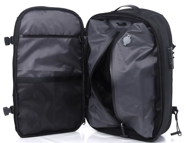 La bomba de aire incluida se recarga a través de USB-C y te permite 20 usos con una carga completa. Cuenta con 3 espaciosos compartimentos principales y múltiples bolsillos ocultos. Incluye un bolsillo separado para artículos húmedos y secos, así como un compartimento dedicado que sostiene de forma segura una computadora portátil de 17.3